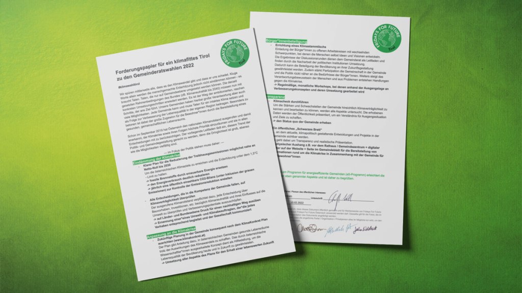 Die Fridays for Future Tirol haben uns diesen Vertrag zur Einhaltung gesetzter Klimaziele geschickt – selbstverständlich haben wir diesen gerne unterzeichnet. ✅✍