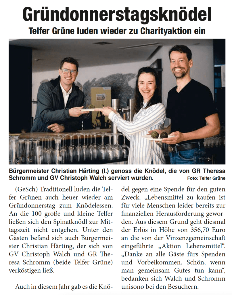 Traditionell luden die Telfer Grünen auch heuer wieder am Gründonnerstag zum Knödelessen.